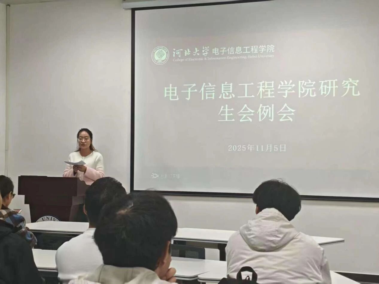 为建设新时代学院研究生会工作队伍,切实提升研究生会成员的履职能力与责任意识,2025年11月5日,电子信息工程学院开展研究生会例会暨成员能力提升培训工作。学院团委李泉坤书记指导工作,研究生会主席郝那涵负责整体统筹,研会全体成员全程参与。会议通过复盘总结、深改问题与精准指导,为后续研究生会的工作开展夯实了能力基础。