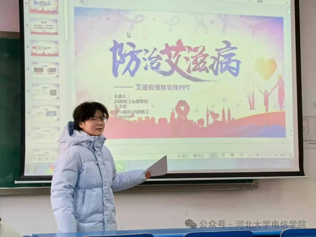 为响应学校艾滋病防治宣传工作部署,切实提升青年学子防艾意识与自我保护能力,电子信息工程学院以各班为单位,全覆盖开展艾滋病防治主题宣讲活动,用科学知识筑牢健康防线,以青春担当传递防艾力量。