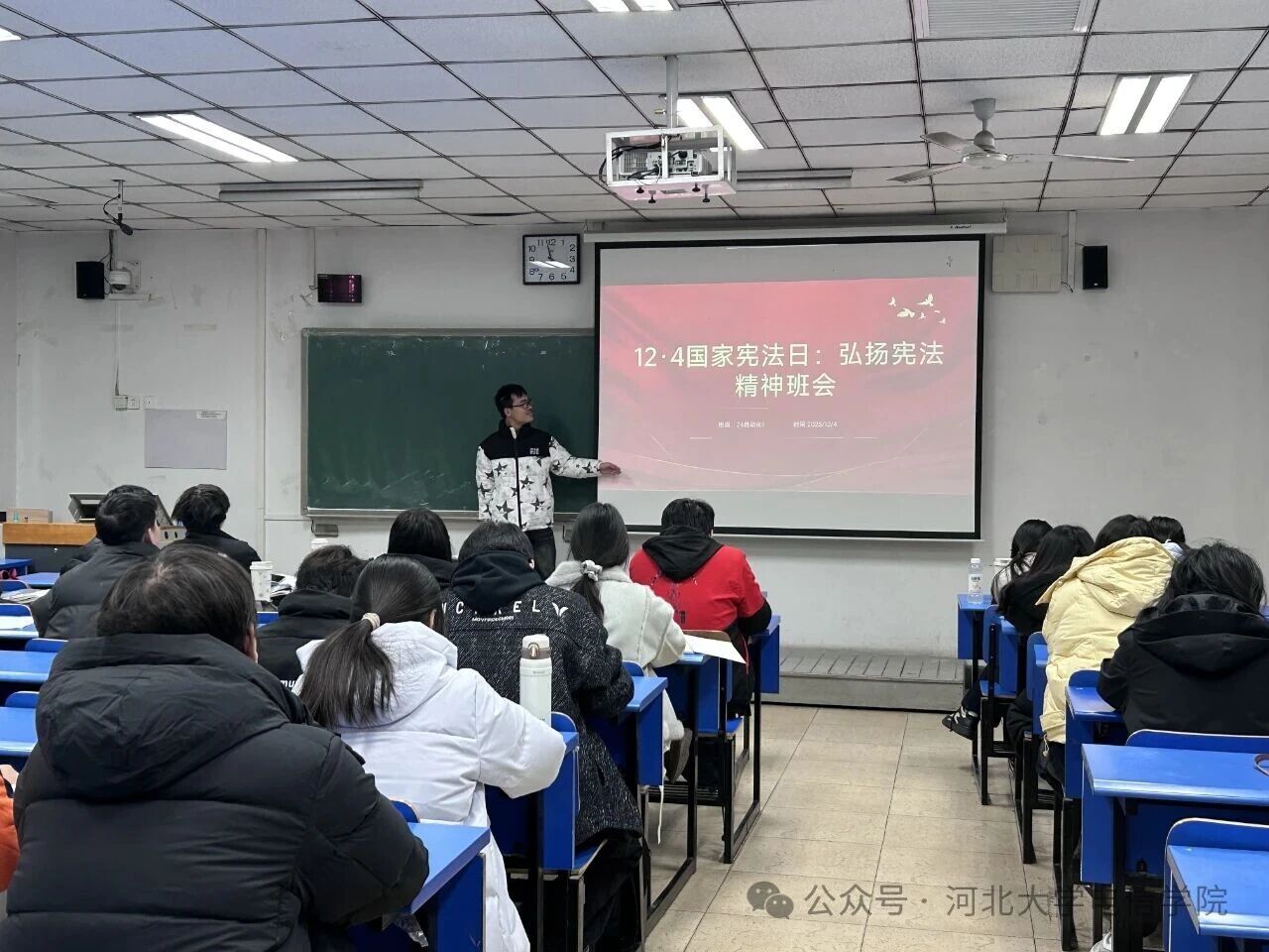 在学院统一部署下,各班级安全委员积极牵头,围绕“国家宪法日”自主组织召开形式多样的主题班会。各班紧扣宪法学习重点,通过案例研讨、观看短片等方式,将法治观念融入日常讨论,实现学习教育的全员覆盖与有效渗透。