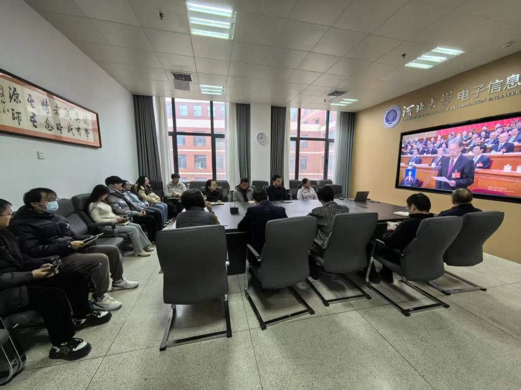 开幕会直播过程中,全体人员聚精会神、认真聆听政府工作报告。大家不时提笔记录报告中关于教育强国建设、科技自立自强、人才引领驱动等与学校、学院发展息息相关的重点内容,现场学习氛围庄重而热烈。大家一致认为,政府工作报告站位高远、内涵丰富,既系统总结了过去一年国家发展取得的来之不易的成就,也为新一年各项事业发展擘画了宏伟蓝图、指明了前进方向。