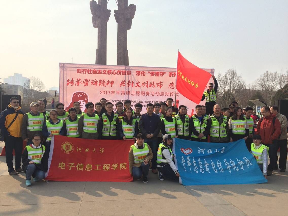 2017年3月5日上午,我院青年志愿者分队与电子爱好者协会成员在保定市人民广场参加了保定市2017年学雷锋志愿服务活动启动仪式。