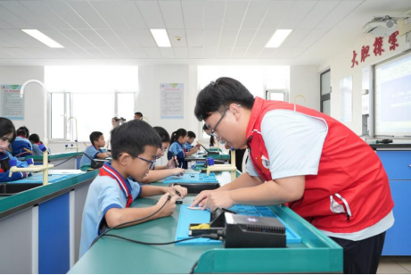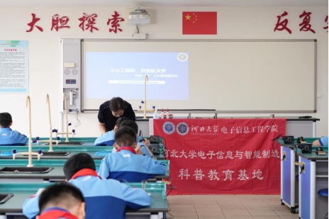 2025年9月18日下午,在全国首个科普月来临之际,河北大学电子信息工程学院党委组织实验中心教师党支部、智信医工混编党支部、电科系教师党支部和学生党支部与电子信息与智能制造科普教育基地,共同走进保定市阜平县白河学校,开展“科普下乡”活动,将高校优质科普资源注入乡村校园,为当地师生打造了一场融知识、趣味与实践于一体的科普盛宴。